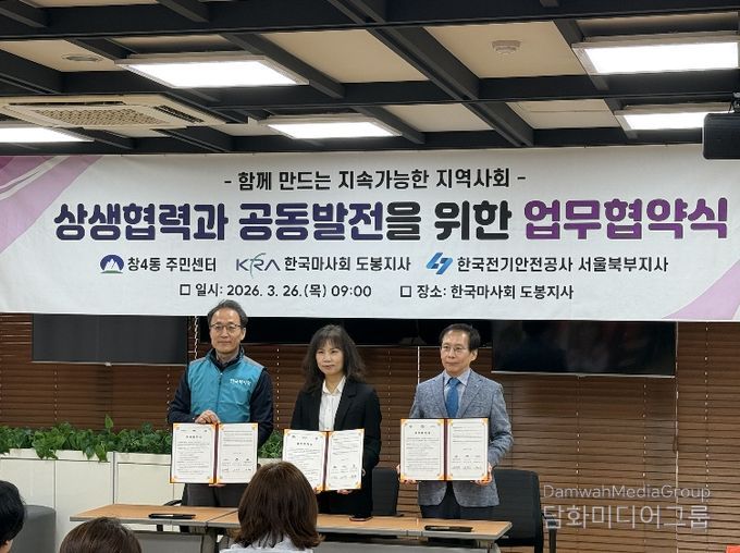 협약식에는 오청은 창4동장, 정승기 한국마사회 도봉지사장, 김창수 한국전기안전공사 서울북부지사장이 참석해 상호협력을 약속했다.