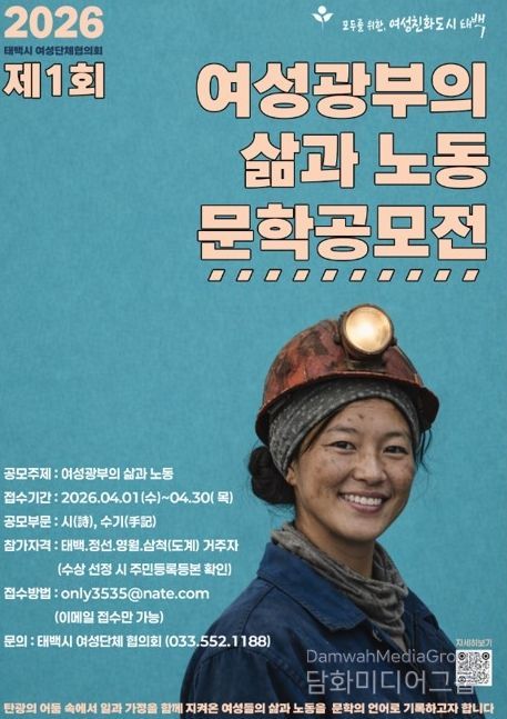 시민행정신문 강갑수 기자 | 태백시 여성단체협의회(회장 김미숙)는 오는 4월 1일부터 30일까지 '2026년 여성광부의 삶과 노동' 문학 공모전을 개최한다고 밝혔다.