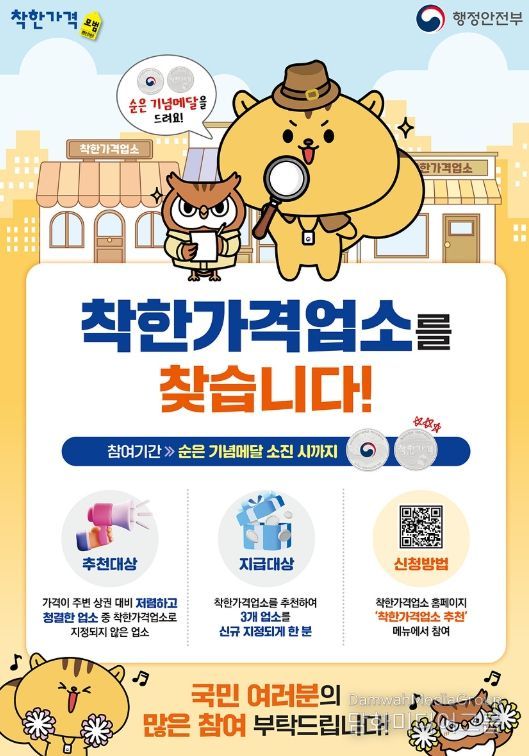 시 관계자는 “고물가 상황 속에서도 착한가격업소가 지역 경제의 든든한 버팀목 역할을 하고 있다”며, “앞으로도 지속적인 발굴과 지원을 통해 시민과 소상공인이 함께 상생할 수 있는 환경을 만들어가겠다”고 말했다.