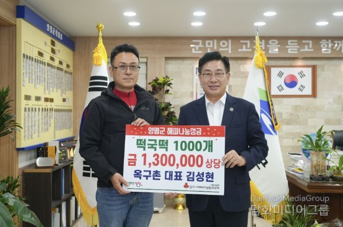 시민행정신문 강갑수 기자 | 양평군은 지난 1일 농업회사법인 ㈜옥구촌한우가 지역 내 취약계층을 위해 130만 원 상당의 떡국떡 1,000개를 기탁했다고 밝혔다.