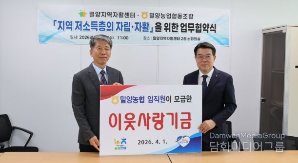 이번 협약을 통해 양 기관은 지역 내 기부문화 확산과 저소득층 지원을 위한 협력체계를 구축하고 저소득층 자립·자활 지원을 위한 협력을 강화하기로 했다. 특히 이날 협약식에서는 밀양농협 임직원들이 자발적으로 모금한 ‘사랑의 기금’ 300만원을 센터에 전달하며 나눔의 의미를 더했다.