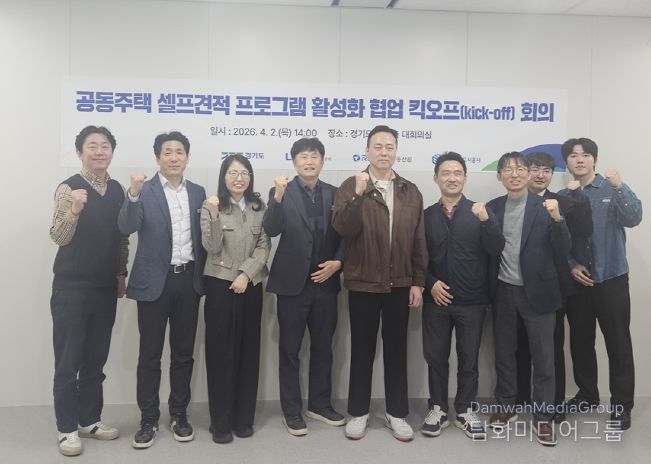 경기도는 4월 2일 경기도청에서 중앙공동주택관리지원센터(한국토지주택공사/LH), K-apt(한국부동산원), 경기주택도시공사(GH) 실무자들이 참석한 가운데 ‘공동주택 셀프견적 프로그램 활성화 협업 킥오프(Kick-off) 회의’를 개최했다.