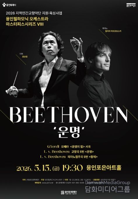 시민행정신문 기자 | 용인문화재단은 오는 5월 15일 오후 7시 30분 용인포은아트홀에서 ‘2026년 지역민간교향악단 지원·육성사업’의 첫 공연으로 용인필하모닉오케스트라의 기획공연 '마스터피스 시리즈 Ⅷ - 베토벤 ‘운명’'을 선보인다.
