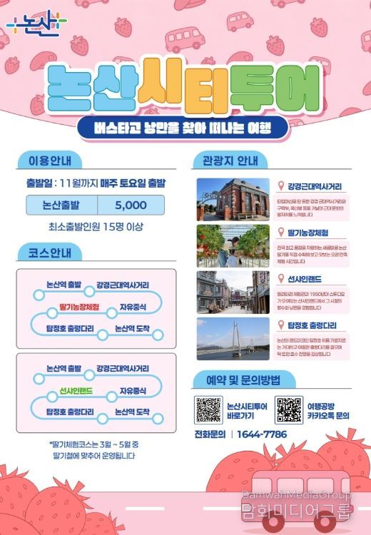 시 관계자는 “시티투어버스는 논산의 핵심 명소를 한 번에 즐기고, 새로운 재미와 감동을 동시에 느낄 수 있는 여행 프로그램”이라며 “추억과 낭만이 있는 논산의 매력을 충분히 느끼고 가실 수 있도록 차질없이 준비하겠다”고 말했다.