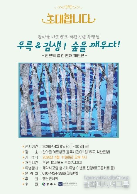 한편, 전찬덕 작가는 충주문화원장을 역임하고 깃발 서예전, 담장의 향기전 등 다양한 기획전을 통해 지역 문화예술 발전에 기여해 온 중견 예술가다.