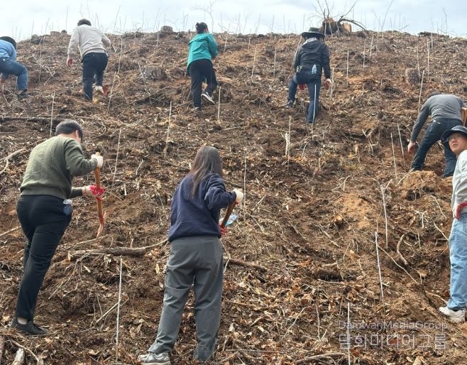 참석자들은 헛개나무와 쉬나무 묘목을 심으며 건강한 산림 조성과 지속 가능한 환경 조성에 힘을 보탰다.