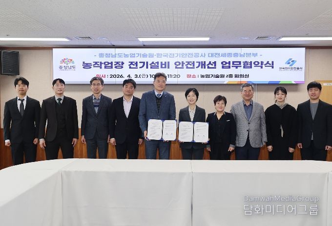 시민행정신문 이세훈 기자 | 충남도 농업기술원은 3일 기술원 회의실에서 한국전기안전공사 대전세종충남본부와 ‘농업현장 전기설비 안전진단 및 기술지원’을 위한 업무협약(MOU)을 체결했다.