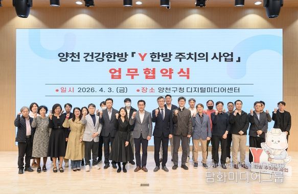 구는 본격적인 운영에 앞서 4월 3일 오후 구청 양천디지털미디어센터에서 양천구한의사회와 통합돌봄의 일환인 ‘Y 한방주치의 사업’ 추진을 위한 업무협약(MOU)을 체결했다.