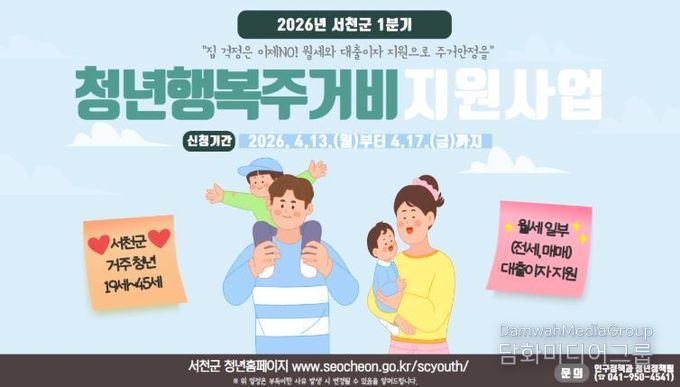 시민행정신문 강갑수 기자 | 서천군이 오는 13일부터 17일까지 2026년 1분기 청년 행복주거비 신청을 받는다.