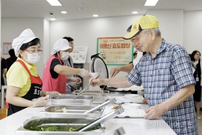 ‘주민참여 효도밥상’은 소득 수준과 관계없이 75세 이상 어르신을 대상으로 양질의 점심 식사는 물론 안부를 살피는 돌봄, 건강 관리, 법률·세무 상담까지 연계한 원스톱 어르신 복지 서비스로 자리매김하고 있다.