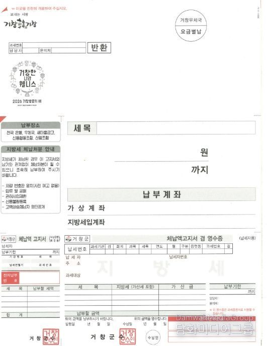 시민행정신문 강갑수 기자 | 거창군은 고령층 납세자의 가독성과 납부 편의를 높이기 위해 4월부터 큰글씨 체납고지서를 제작해 발송한다고 밝혔다.