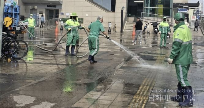 참여자들은 수원역 광장과 환승센터 일대에 적치된 폐기물을 수거하고 살수차를 활용한 물청소를 실시하는 등 환경 개선 활동에 힘을 모았으며, 고압세척장비를 활용해 보도 표면은 물론 오염이 쉽게 누적되는 구간까지 세심하게 세척 작업을 진행하여 쾌적한 거리 환경 조성에 앞장섰다.