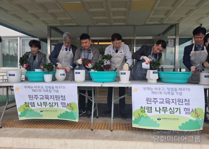 시민행정신문 기자 | 강원특별자치도원주교육지원청은 4월 6일 오전 9시 30분, 원주교육지원청 청사 현관 앞에서 제81회 식목일 기념 ‘청렴 나무심기’ 행사를 실시했다.