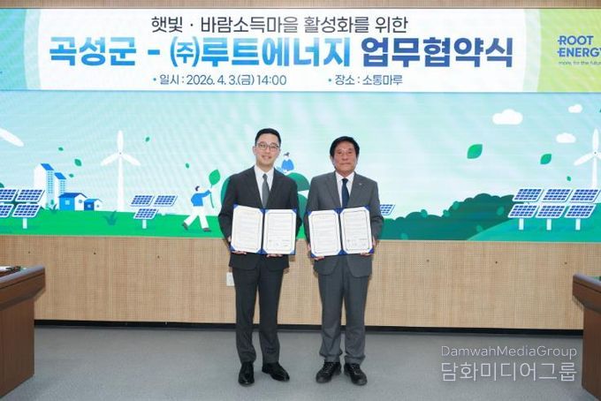 군은 지난 3일 재생에너지 전문기업 ㈜루트에너지와 ‘햇빛·바람소득마을 활성화를 위한 업무협약(MOU)’을 체결하고, 주민 주도형 에너지사업 추진을 위한 협력체계를 구축했다고 밝혔다.