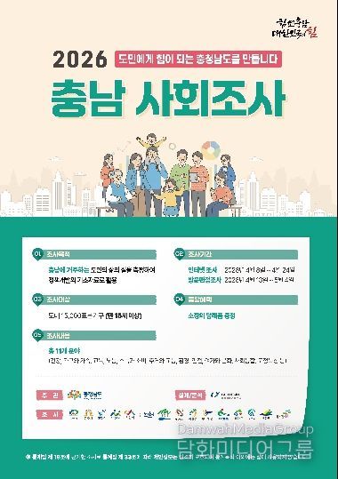 시민행정신문 강갑수 기자 | 충남도는 오는 8일부터 5월 4일까지 도내 1만 5000가구를 대상으로 ‘2026 충남 사회조사’를 실시한다고 7일 밝혔다.