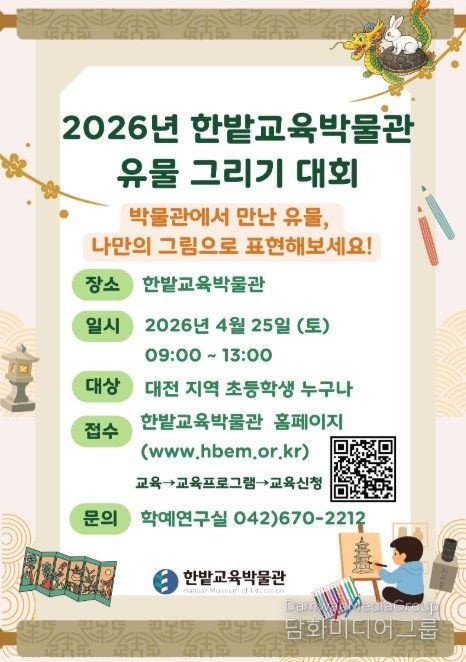 시민행정신문 기자 | 대전시교육청 한밭교육박물관은 우리 문화유산에 대한 관심을 높이고 창의적 표현 활동을 지원하고자, 25일 ‘2026년 한밭교육박물관 유물 그리기 대회’를 개최한다고 밝혔다.