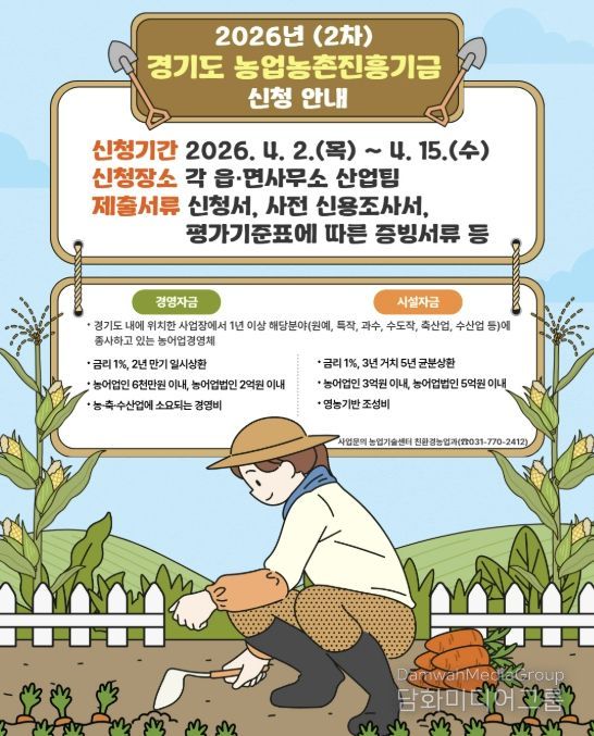 시민행정신문 강갑수 기자 | 양평군은 농어업인의 소득 향상과 삶의 질 개선, 경영 안정을 도모하고 농업 경쟁력 강화를 위해 ‘2026년 경기도 농업농촌진흥기금 경영 및 시설자금 지원’ 2차 대상자를 모집한다고 밝혔다.