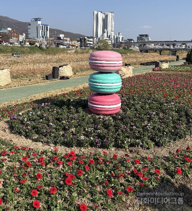 방서교부터 용평교 구간에 조성된 꽃정원(1,000㎡)에는 크리산세멈, 비올라 등 5만본 이상의 꽃묘를 식재 중이며, 사탕 조형물을 설치해 봄 분위기를 더할 예정이다.