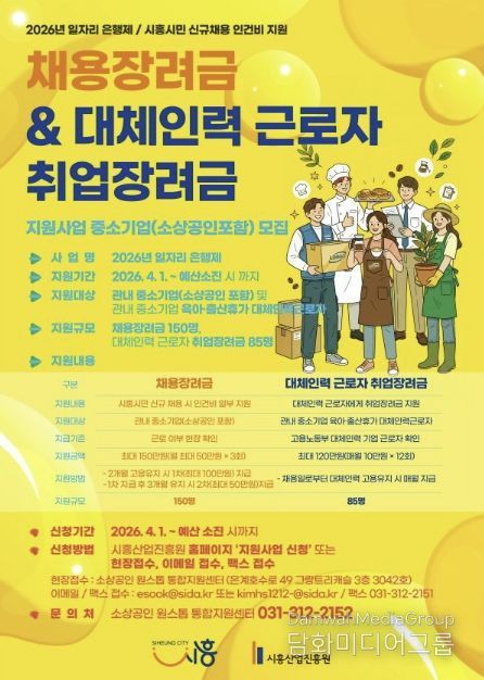 시민행정신문 강갑수 기자 | 시흥시는 관내 중소기업의 신규 채용을 촉진하고 안정적인 고용 창출을 위해 ‘2026년 일자리 은행제’ 사업 참여자 모집을 4월 1일부터 시작한 가운데 예산 소진 시까지 진행한다.