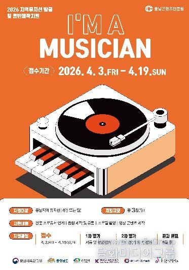 시민행정신문 강갑수 기자 | 충남콘텐츠진흥원이 운영하는 충남음악창작소는 충남 지역 뮤지션들에게 음반 제작부터 발매·유통까지 종합적인 지원을 제공하는 ‘I AM A MUSICIAN’ 프로젝트를 2026년에도 추진한다.