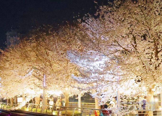 ‘금석첨화’ 의 매력은 낮과 밤을 가리지 않고 빛나고 있다. 한낮에는 파란 하늘 아래 흩날리는 벚꽃이 화사한 봄의 절정을 보여주고 있으며 야간에는 산책로를 은은하게 밝히는 경관조명이 가동되어 로맨틱한 봄의 분위기를 연출하며 늦은 저녁 시간에도 야간 벚꽃 산책을 즐기며 사진을 남기는 시민들로 북적였다.
