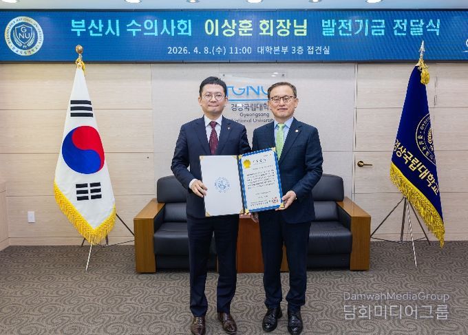 시민행정신문 강갑수 기자 | 경상국립대학교는 4월 8일 오전 11시 대학본부 3층 접견실에서 이상훈 부산광역시 수의사회 회장(금빛동물수술센터 원장)의 대학발전기금 전달식을 개최했다.