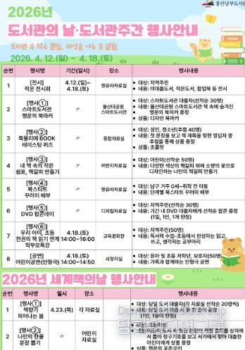 이번 행사는 울주·남부·동부도서관에서 전 세대가 즐길 수 있는 전시, 공연, 체험 활동을 중심으로 진행된다.