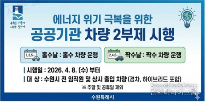 시민행정신문 강갑수 기자 | 수원시 장안구는 최근 심화되는 국가 자원 안보 위기 극복에 동참하기 위해 구청 부설주차장 방문 시민을 대상으로 승용차 5부제를 2026.4.8.부터 전격 시행한다고 밝혔다.