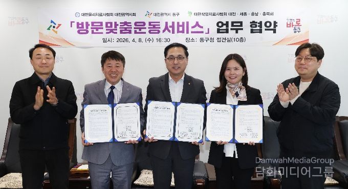 시민행정신문 기자 | 대전 동구는 지난 8일 의료요양 통합돌봄사업의 원활한 추진을 위해 대한물리치료사협회 대전시회(회장 김성호)‧대한작업치료사협회 대전세종충남충북회(회장 유지애) 등 방문운동서비스 제공기관 2곳과 업무 협약을 체결했다고 밝혔다.