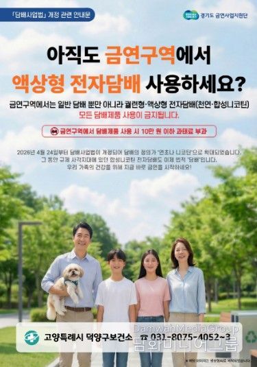한편, 덕양구보건소는 금연구역 관리 강화와 함께 금연클리닉을 운영해 금연 상담 및 금연보조제 지원 등 금연 실천을 위한 지원을 병행하고 있다.