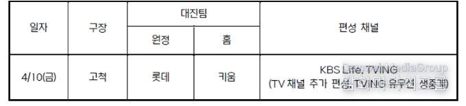 4월 10일(금) 고척 롯데-키움 경기 TV 생중계 편성 확정