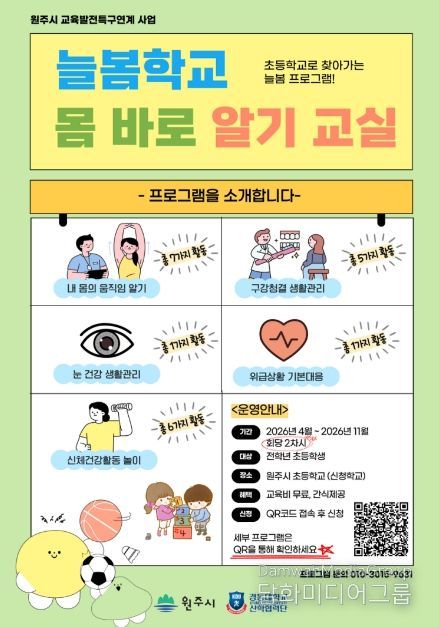 한편 원주시는 지난해 ‘찾아가는 우리동네 늘봄학교’ 운영을 통해 15개 학교, 2,800여 명의 학생이 참여하는 성과를 거둔 바 있다.