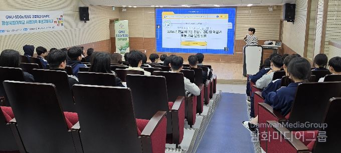 시민행정신문 강갑수 기자 | 경상국립대학교 지속가능발전센터는 4월 8일 사범대학 부설고등학교 영상활용관에서 고등학생 47명을 대상으로 ‘SDGs 실천을 이끄는 청소년 리더의 역할과 활동 기획·운영 방법’이라는 주제로 교육을 진행했다.