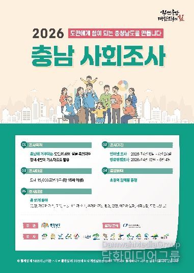 시민행정신문 강갑수 기자 | 논산시는 오는 4월 13일부터 5월 4일까지 관내 1,020가구의 만 15세 이상 가구주 및 가구원을 대상으로 ‘2026 충남사회조사’를 실시한다.