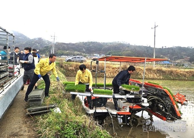 군은 이번 첫 모내기를 시작으로 6월 하순경까지 순차적으로 모내기를 마무리 할 계획이다. 특히 군은 23억 원 규모의 예산을 투입해 지역농협과 협력하는 벼‧콩 공동방제 지원 및 자가 방제 약제 지원 사업을 추진해 관내 농업인을 방제 작업에 우선 참여시켜 지역 경제 선순환을 도모하고 있다.