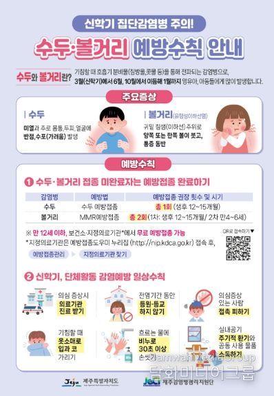 시민행정신문 기자 | 서귀포시 서부보건소는 봄철 어린이집, 유치원 및 학교에서 수두와 유행성이하선염(볼거리) 발생이 증가하고 있어 단체생활 중 감염병 예방수칙 준수를 당부했다.
