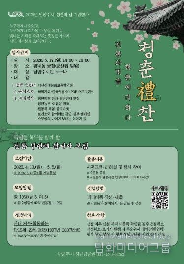 시민행정신문 기자 | 남양주시는 성년의 날을 앞두고 전통 성년례 행사에 참여할 청년을 모집한다고 10일 밝혔다.