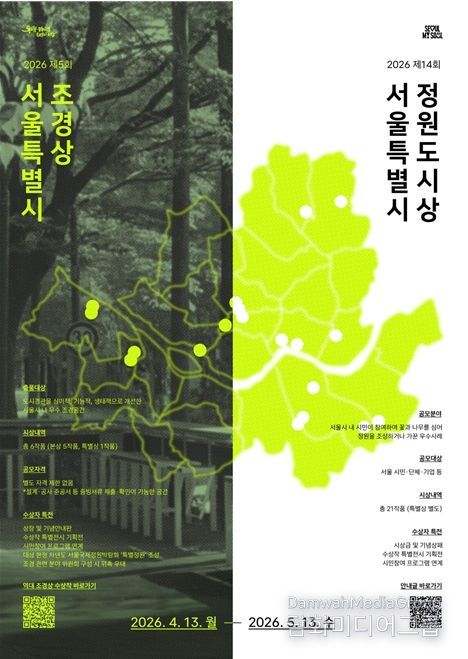 시민행정신문 이존영 기자 | 서울시는 도시경관 개선에 기여한 우수 조경공간과 시민참여 정원 사례를 발굴·확산하기 위해 '2026 서울특별시 조경상·정원도시상' 공모를 4월 13일부터 5월 13일까지 진행한다고 밝혔다.