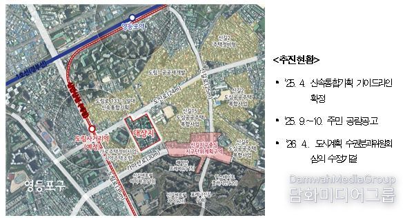 대상지 일대는 ’07년 신길재정비촉진지구로 결정됐다가 사업추진이 부진하여 ’14년 해제된 지역으로 노후된 단독·다세대주택이 혼재되어 있고, 보행환경이 열악한 주택지이다. 2024년 3월 후보지 선정 이후 분야별 전문가들이 참여하여 마련한 신속통합기획 가이드라인을 반영하여 정비계획을 수립했으며,