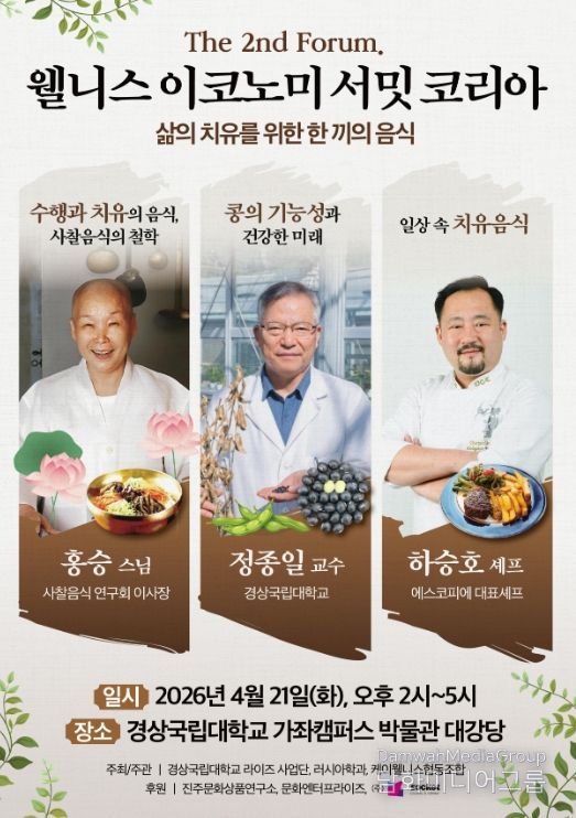 시민행정신문 이세훈 기자 | 경상국립대학교 라이즈(RISE) 사업단(단장 황세운)과 러시아학과(학과장 김보라)가 주최하고 케이웰니스협동조합(이사장 박미영)이 주관하는 ‘웰니스 이코노미 서밋 코리아’가 4월 21일 오후 2시 가좌캠퍼스 박물관 1층 대강당에서 ‘삶의 치유를 위한 한 끼의 음식’이라는 주제로 열린다.