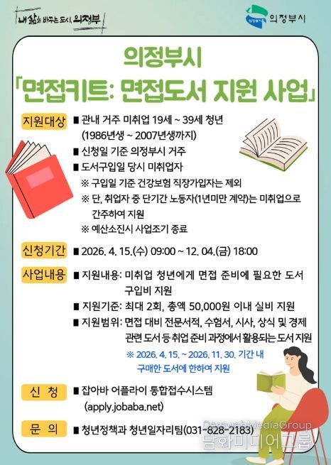 이번 사업은 의정부시에 주민등록을 둔 19세부터 39세까지의 미취업 청년을 대상으로 하며, 면접 준비에 필요한 도서 구입 비용을 지원하는 것이 주요 내용이다. 이를 통해 청년들의 자기주도적인 취업 준비를 돕고 실질적인 취업 경쟁력 향상을 지원할 계획이다.