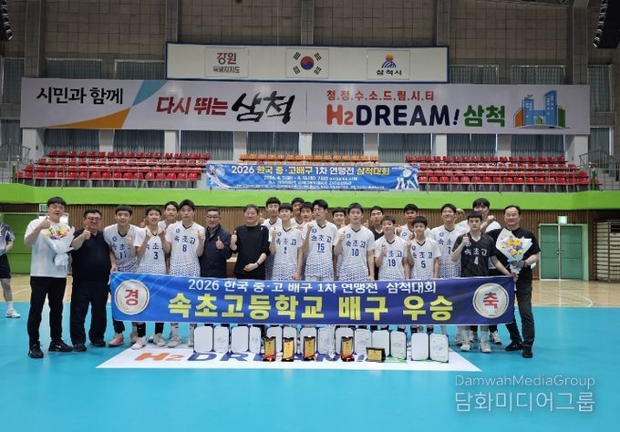 시민행정신문 장규호 기자 | 속초고등학교 배구부가 최근 삼척에서 열린 ‘2026 한국 중·고 배구 1차 연맹전’에서 우승을 차지하며 전통 명문 배구부로서의 위상을 다시 한번 입증했다.
