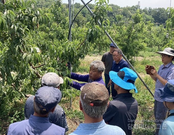교육 대상은 복숭아 재배 경력 3년 이상 농가로 구성된 복숭아연구회 회원 38명이다.