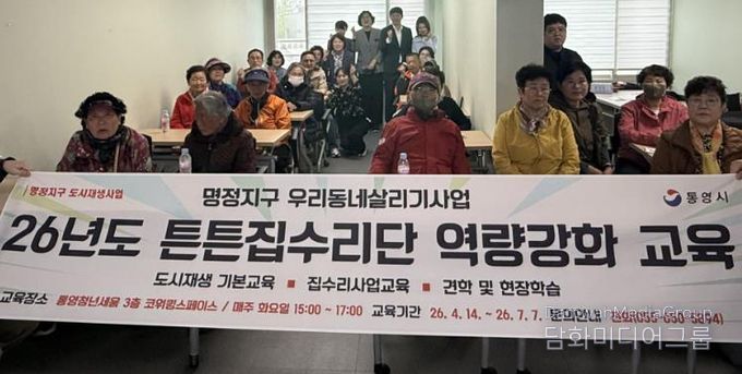 시민행정신문 강갑수 기자 | 통영시는 명정지구 우리동네살리기 사업의 일환으로 추진 중인 ‘26년도 튼튼집수리단 교육’이 지난 14일 개강식을 시작으로 본격적인 일정에 들어갔다고 밝혔다.
