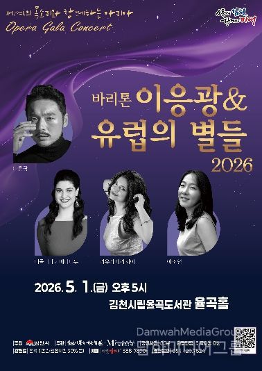 시민행정신문 기자 | 김천시 문화예술회관은 오는 5월 1일 오후 5시 율곡도서관 율곡홀에서 오페라 갈라 콘서트 '바리톤 이응광 & 유럽의 별들 2026'를 개최한다.