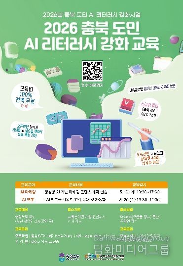 시민행정신문 강갑수 기자 | 충청북도와 충북과학기술혁신원(원장 고근석)은 AI 일상화 시대에 대응하여 도민의 인공지능(AI) 활용 역량을 강화하기 위해 오는 5월 19일, 5월 20일 '2026 충북 도민 AI 리터러시 강화 교육'을 추진한다고 밝혔다.