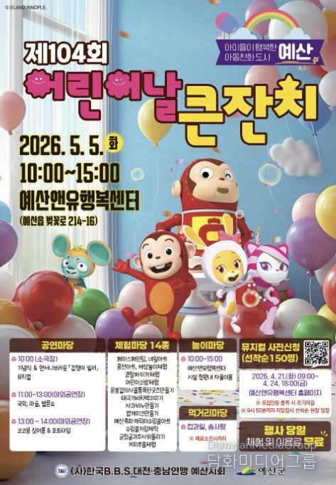 시민행정신문 기자 | 예산군은 제104회 어린이날을 맞아 5월 5일 오전 10시부터 오후 3시까지 예산앤유행복센터에서 어린이날 기념행사를 개최한다.