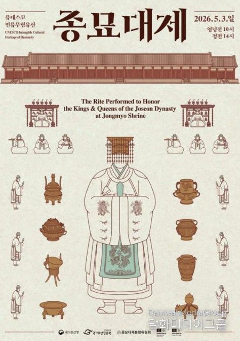 시민행정신문 이존영 기자 | 국가유산청은 산하 국가유산진흥원, 종묘대제봉행위원회와 5월 3일 오후 2시 종묘(서울 종로구)에서 '2026년 종묘대제'를 봉행한다.