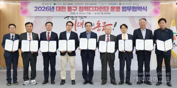 시민행정신문 강갑수 기자 | 대전 동구는 지·산·학 협력 기반의 ‘정책디자인단’ 운영을 위해 지난 15일 지역 대학 및 관계기관과 업무협약을 체결했다고 밝혔다.