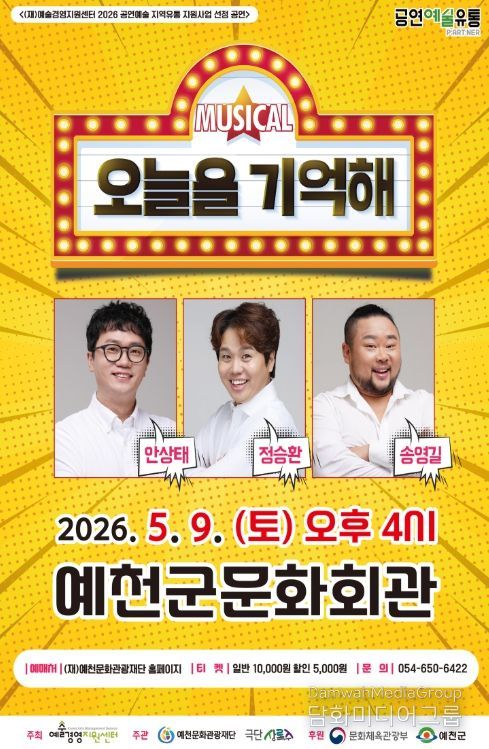 시민행정신문 기자 | (재)예천문화관광재단은 오는 5월 9일 오후 4시 예천군문화회관에서 뮤지컬 '오늘을 기억해' 공연을 선보인다.
